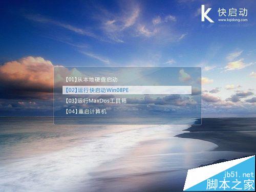 1、將制作好的快啟動U盤啟動盤插入組裝機后面的usb接口,重啟電腦按一鍵U盤啟動快捷鍵【F11】進入快啟動主菜單界面,選擇“【02】運行快啟動win08pe”,如下圖所示: