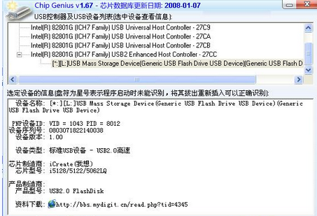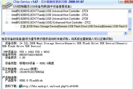 要量產制作前首先要確認U盤主控芯片的廠家及型號!可以用ChipGenius主控芯片識別軟件來檢測這些信息