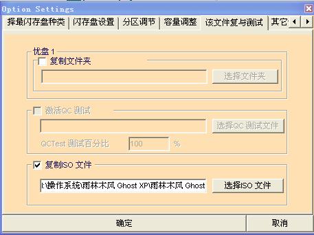 設置完分區后,到"該文件復制及測試項,在優盤1中最后一項選擇"復制ISO文件",點選擇ISO文件瀏覽ISO,如圖: