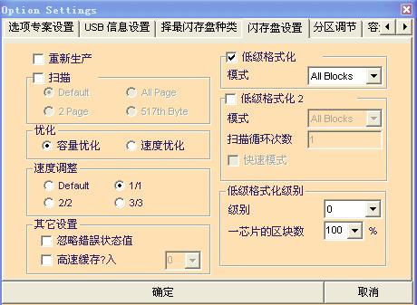 量產工具正確檢測出U盤后,就可以開始量產,量產前最好要低級格式化一次!這樣能將U盤中存在的錯誤狀態值屏蔽掉,避免產生的CD鏡像程序運行出錯及不正常!以下是低級格式化的設置!