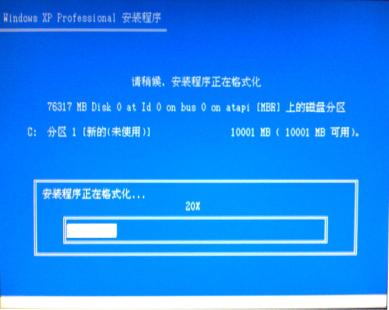 按ENTER鍵后進入格式化界面,待進度條到100%后直接進入安裝界面,如下圖: