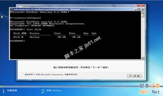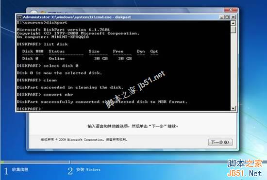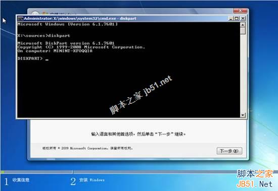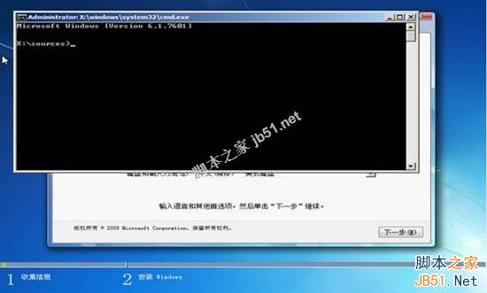 1、在進入Windows 7系統安裝的首畫面,按下鍵盤上Shift鍵+Fn鍵+F10鍵。啟動CMD命令行模式窗口: