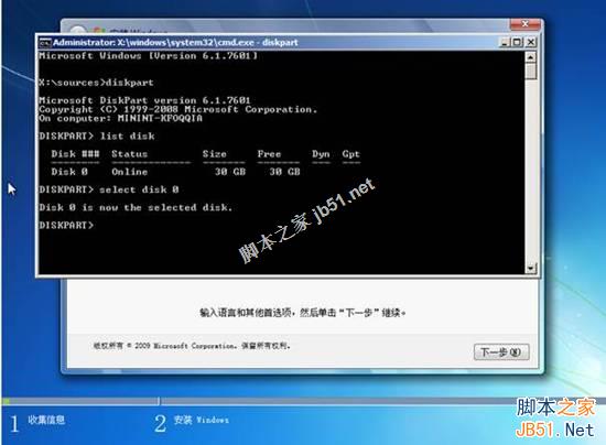 4、輸入S E L E C T disk 0命令并按下回車鍵來選擇您筆記本中的硬盤。