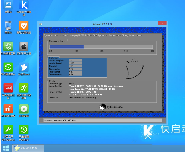 系統鏡像文件釋放完成后,會重啟電腦,我們只需根據提示完成后續安裝操作即可。以上就是快啟動u盤安裝ghost win8系統的整個過程,如果有朋友想安裝其他系統,也可以參考上面的方法。