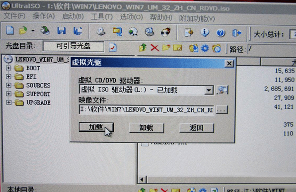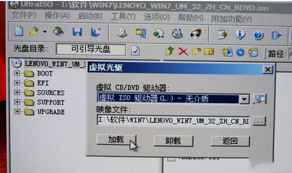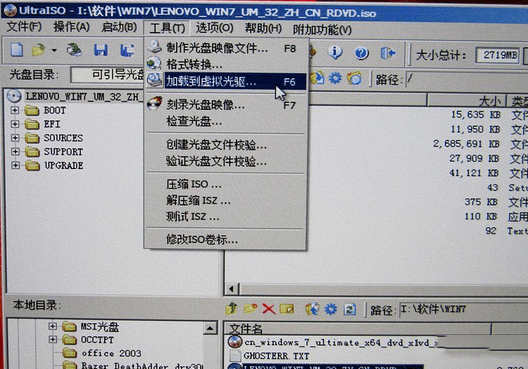 然后點“工具”,“加載到虛擬光驅(qū)”