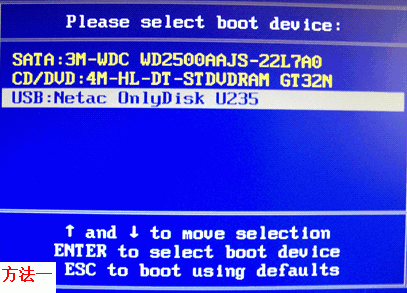 開機或重啟之前插入U盤。啟動方法有兩種: