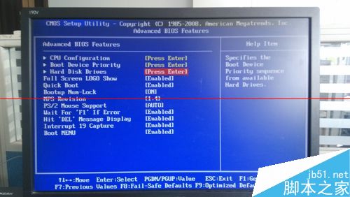 1、首先,我們先介紹下U盤裝系統開始步驟。將啟動U盤插入電腦主機,開機后一般按F8或DEL進入BIOS系統,然后選擇Advanced BIOS Features,再選擇Hard Disk Drives。