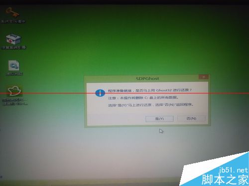 2、然后等電腦進入到這種狀態的時候點擊確定。沒有進入的可以鼠標點擊雨林木風pe一鍵裝機。