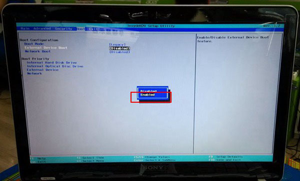 六,最后就是把External Devico Boot項里的Diabled改成Enabled(這樣做的目的是支持外部設備啟動),然后按F10保存退出,如所圖所示: