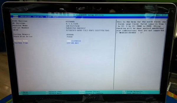 三,接下來就進入到了索尼筆記本的BIOS主界面,如下圖所示: