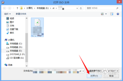 2、彈出“打開ISO文件”窗口---找到剛才下載好的win10 ISO文件--猛戳【打開】