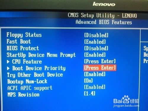4、在啟動(dòng)設(shè)備順序“Boot Device Priority”選項(xiàng)中敲回車