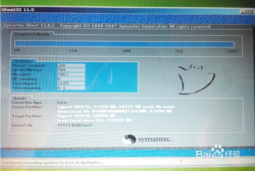 13、現在是將我們u盤里的系統文件拷貝到目的盤(要安裝系統的那個盤),等到拷貝完成后,我們重啟電腦,這樣電腦就會自動裝系統了,如下: