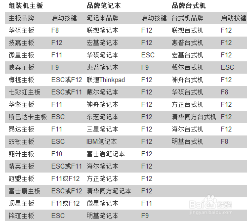 3、我的電腦是聯想筆記本,其他品牌電腦的啟動熱鍵如下: