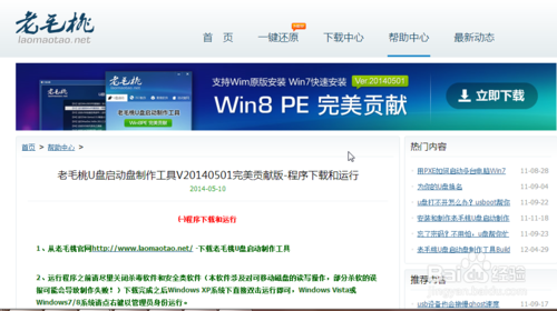 1、首先進入老毛桃官網頁面