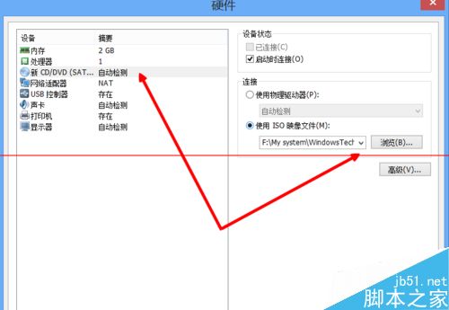 10、光驅這塊,我們使用iso鏡像文件,找到我們下載的鏡像文件。