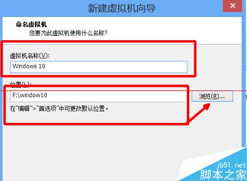 6、我們給虛擬機起一個名字,然后把安裝的路徑修改一下,看你的方便,不要安裝到C盤就好。