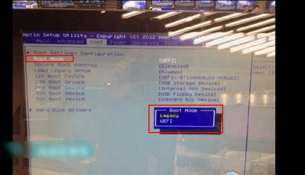 第一步:按下筆記本電源,開機不停的按“F2”進BIOS操作界面,選擇“Boot”選項,將“Boot Mode”中的“UEFI”更改成“Legacy模式。