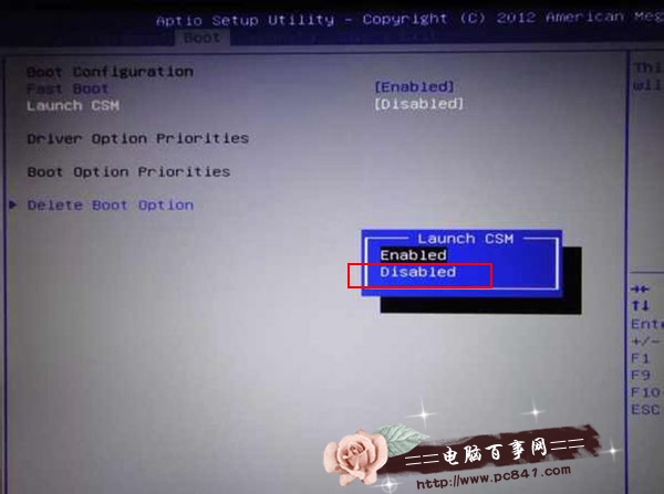 2,按ESC鍵回退到BIOS主界面,切換到BOOT標簽,將Launch CSM改為Enabled(如果是灰色不可以選擇,先按F10保存退出再次進入就可以選擇了),這個選項的作用就是,將UEFI的BIOS改為傳統BIOS模式。