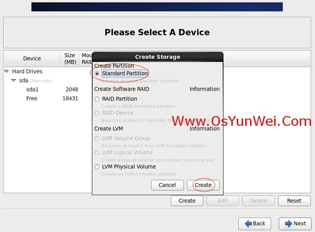 選擇標(biāo)準(zhǔn)分區(qū)Standard Partition,點(diǎn)創(chuàng)建Create