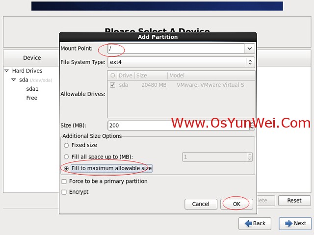 可以看到硬盤的容量,我這里顯示的是20G,現(xiàn)在自定義分區(qū)。