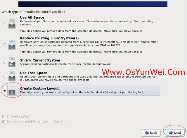 3、CentOS 6.6文本安裝模式不支持自定義分區(qū),建議使用圖形安裝模式安裝;