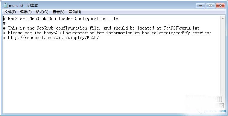 3.點擊“Add New Enty”——“NeoGrub”——“Istall”,然后點擊出現的“Configure”,此時屏幕會出現一個文本框,在文本框后面加入如下代碼并保存: