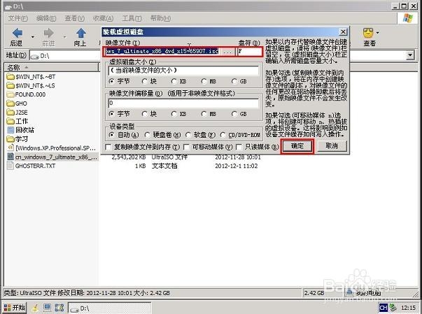 6.記住加載后的虛擬磁盤盤符,這里是F,然后點(diǎn)擊確定按鈕