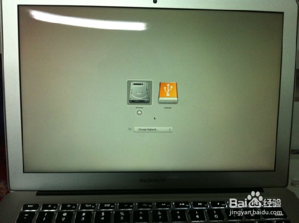 2.然后將U盤插上電腦,重啟電腦,由于蘋果筆記本沒有Bios設(shè)置,通常想用U盤啟動(dòng)插入U(xiǎn)盤,電腦啟動(dòng)時(shí)長(zhǎng)按“optin鍵”,就會(huì)進(jìn)入一個(gè)開機(jī)啟動(dòng)選項(xiàng)界面,如圖: