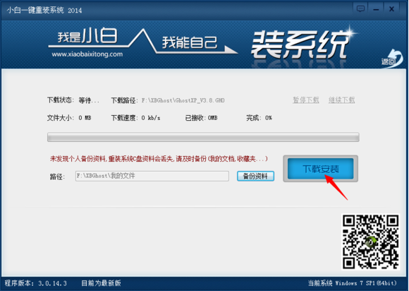 第四步:進入系統的下載安裝界面,點擊“下載安裝”即可,然后開始自動下載你所選的系統版本,完了就會提示重啟安裝,整個系統安裝基本完成!