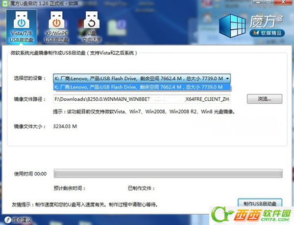 第一步:祭出大家手中的U盤,自然首選至少4G的U盤,已經是標配了吧;然后打開魔方U盤啟動,魔方已經認出你的U盤了吧。