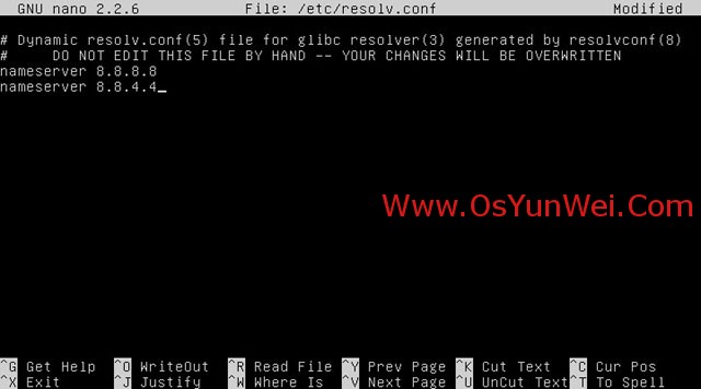 nano /etc/resolv.conf #編輯配置文件,添加以下內(nèi)容