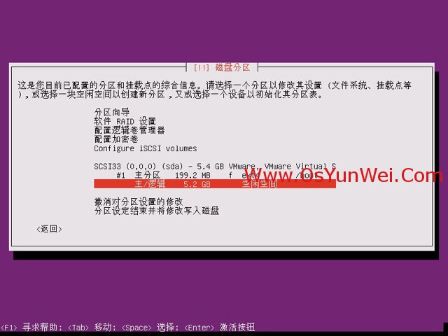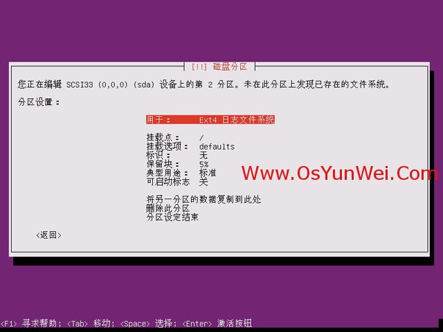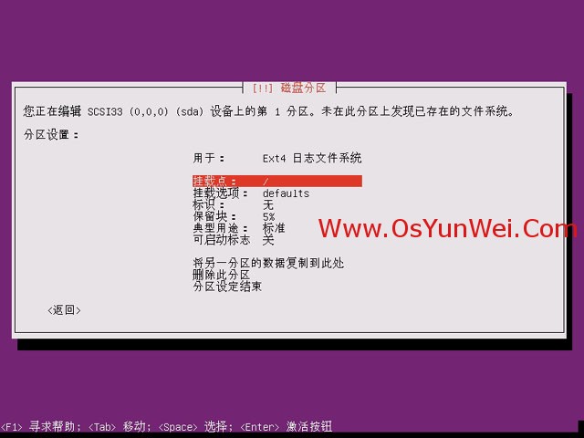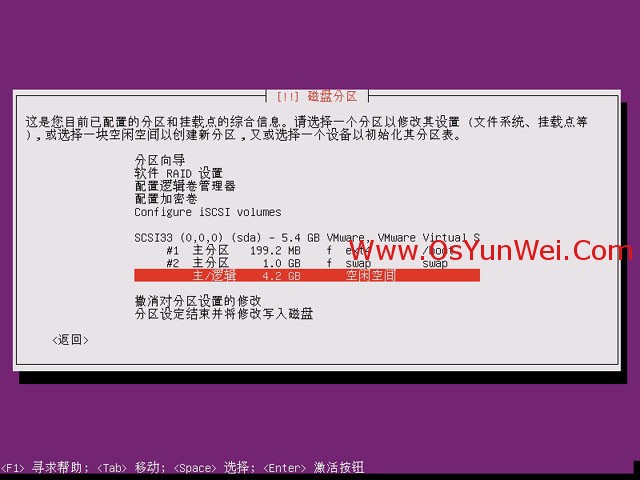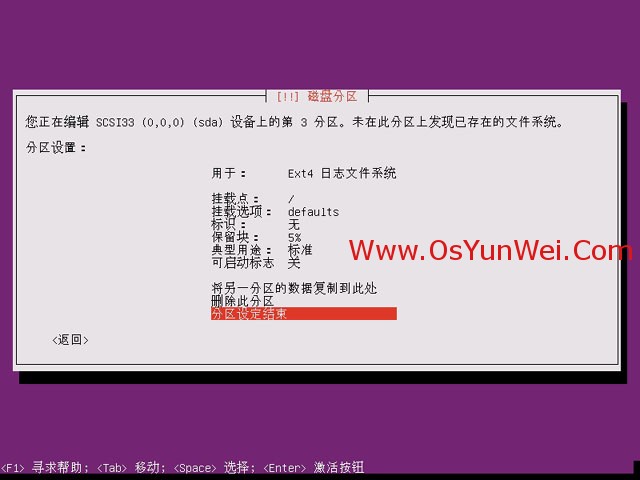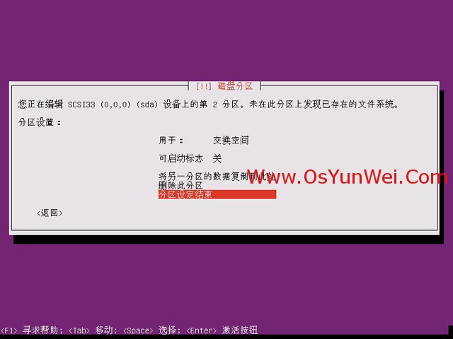 點(diǎn)分區(qū)設(shè)定結(jié)束,這樣就設(shè)置好了swap分區(qū)(一般為內(nèi)存大小的2倍),繼續(xù)重復(fù)上面的步驟,在劃分一個(gè)根分區(qū)