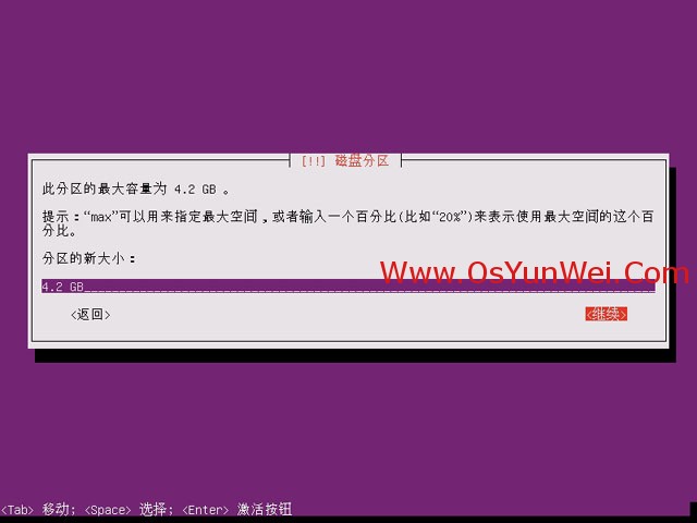 所以剩余空間全部給“/”分區(qū),點(diǎn)繼續(xù)