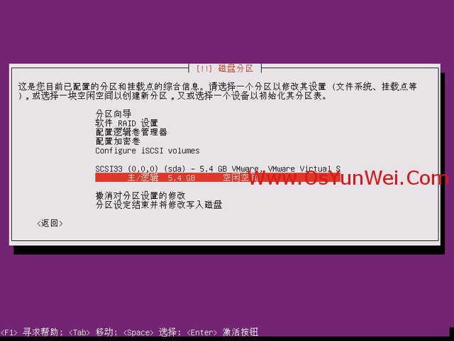 分區(qū)大小,這里默認(rèn)顯示剩余空間(分區(qū)之前先要規(guī)劃好,我這里只分/boot,swap和跟分區(qū)"/"),