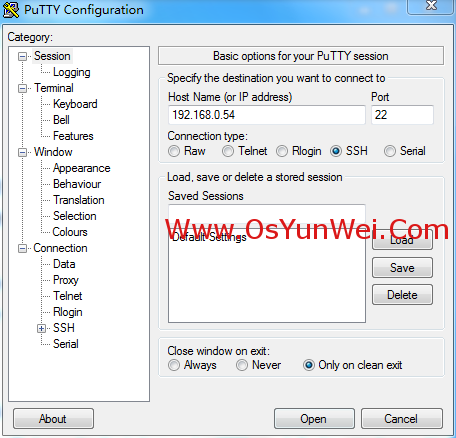 2、使用Putty.exe工具遠程連接到RHEL服務器