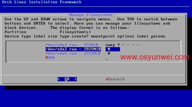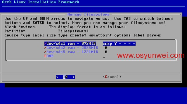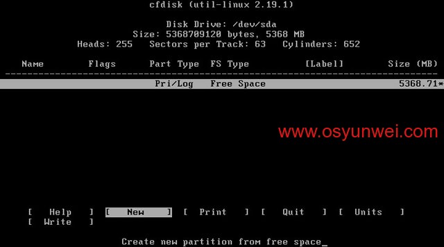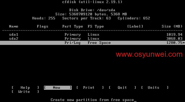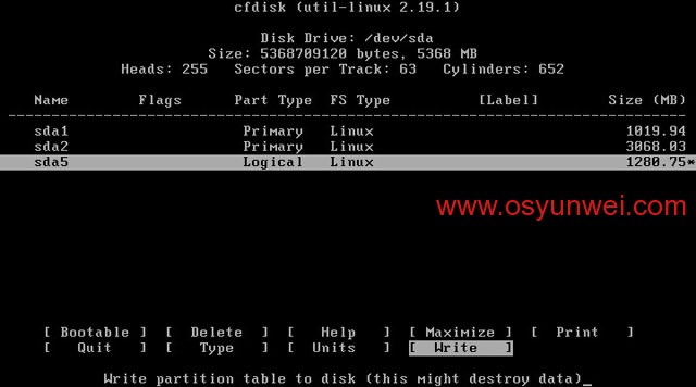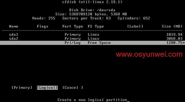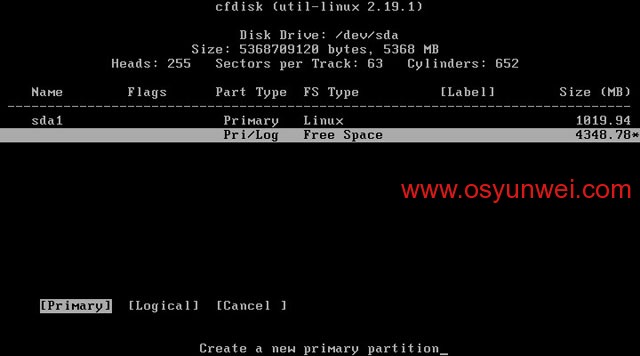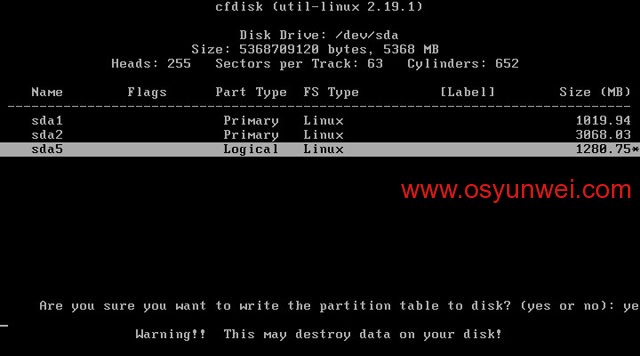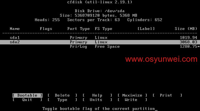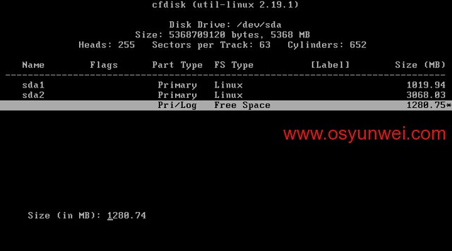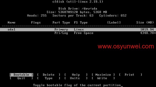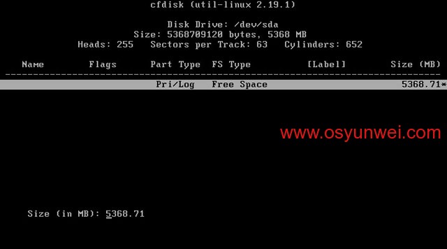 選中第一個/dev/sda這里顯示的是硬盤信息
