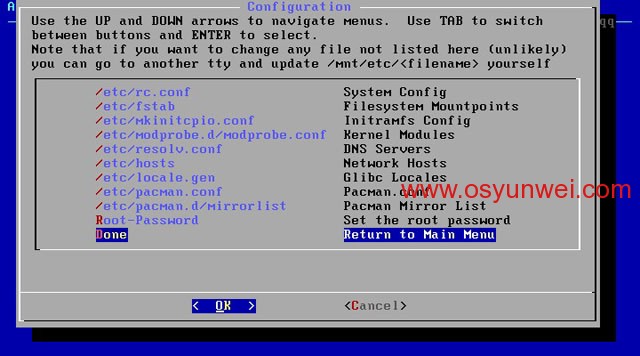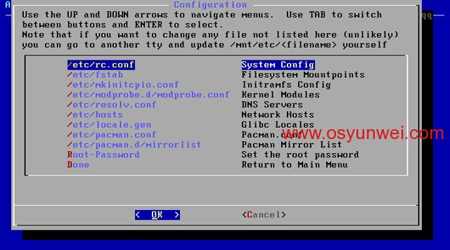 這里列出了系統(tǒng)設(shè)置的各個文件,比如設(shè)置IP地址,設(shè)置DNS,設(shè)置root密碼等配置文件