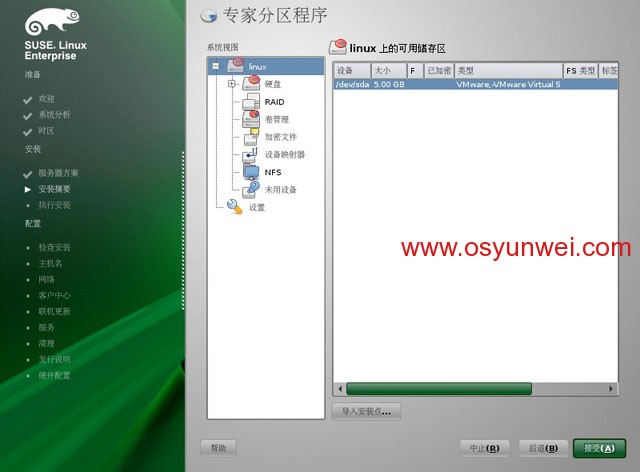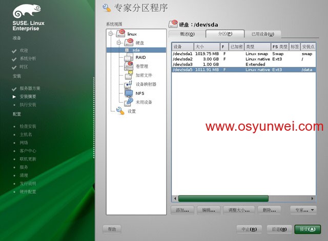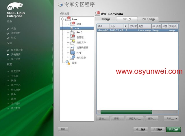 選擇硬盤,sda,點擊添加