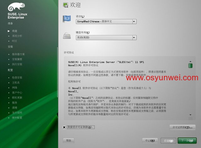 語言選擇簡體中文、鍵盤布局:英語(美國)