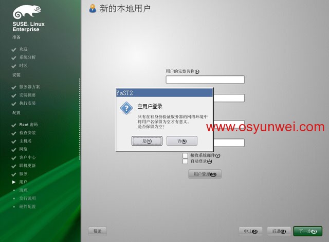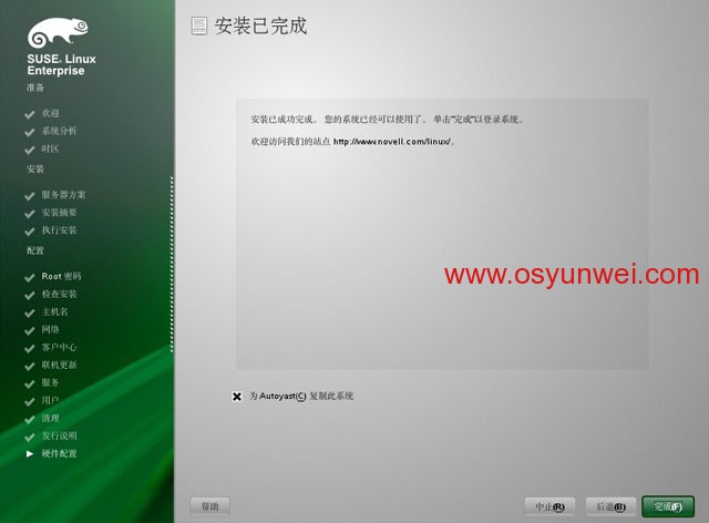 取消選擇:為Autoyast復制此系統,點完成