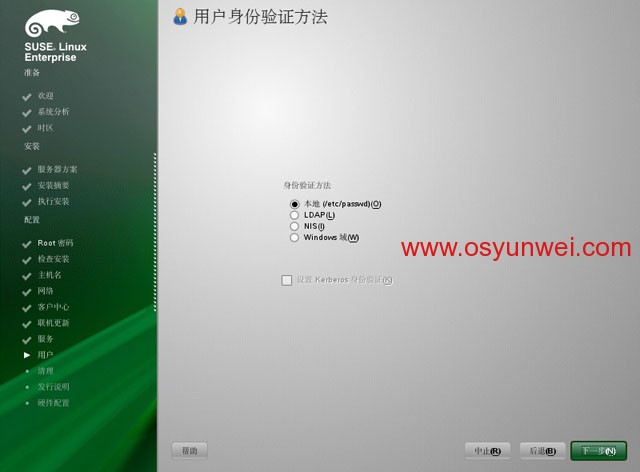 身份驗證方法,選擇第一項,本地(/etc/passwd)