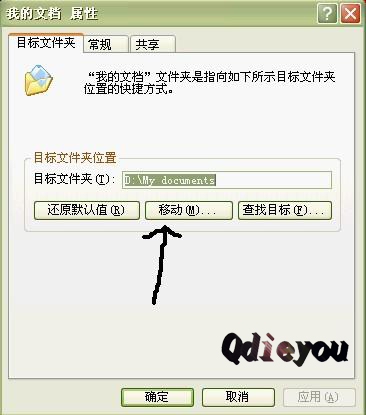 點擊箭頭所指!就可以把我的文檔的默認路徑移動到其他盤了