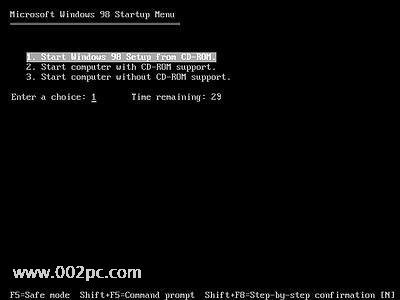 將光驅(qū)為第一啟動(dòng)盤后,把Windows 98安裝光盤放入光驅(qū)中,重新啟動(dòng)電腦至出現(xiàn)如下圖10
