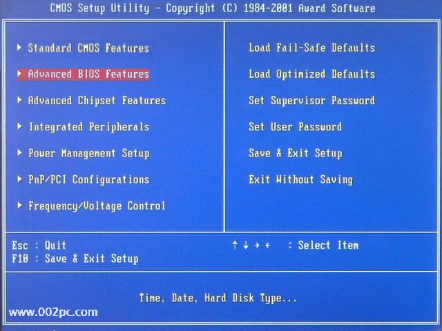 然后按“Enter”回車鍵,即進(jìn)入“Advanced BIOS Features”項(xiàng)設(shè)置,如下圖4