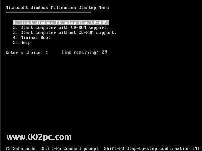 將光驅(qū)為第一啟動(dòng)盤后,把Windows Me安裝光盤放入光驅(qū)中,重新啟動(dòng)電腦至出現(xiàn)如下圖12