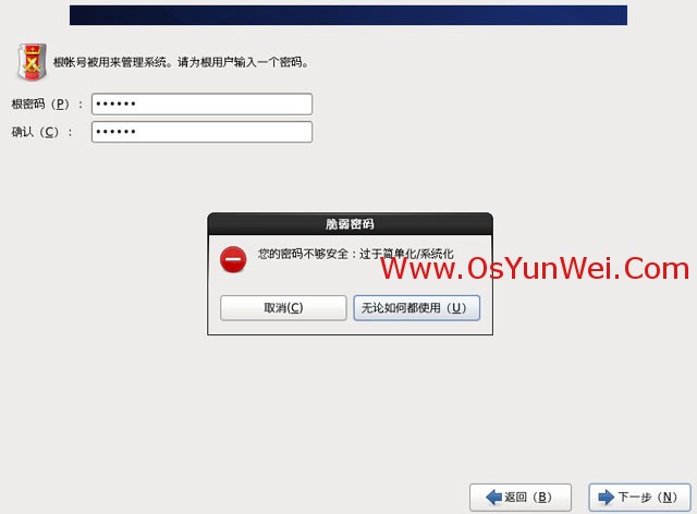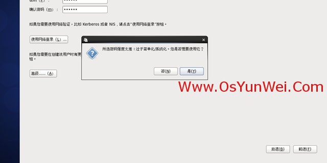 注意:如果你使用的密碼過于簡單,系統會自動提示,這里選擇“無論如何都使用”