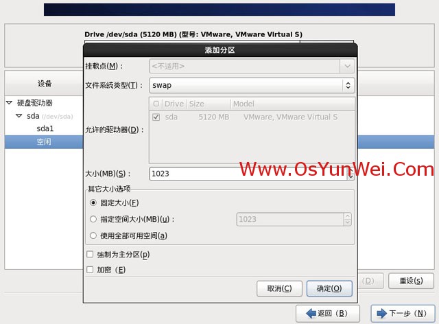 Swap1G(內存小于2G時,設置為內存的2倍;內存大于或等于2G時,設置為2G)