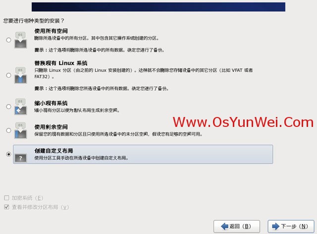 3、CentOS 6.4文本安裝模式不支持自定義分區,建議使用圖形安裝模式安裝;