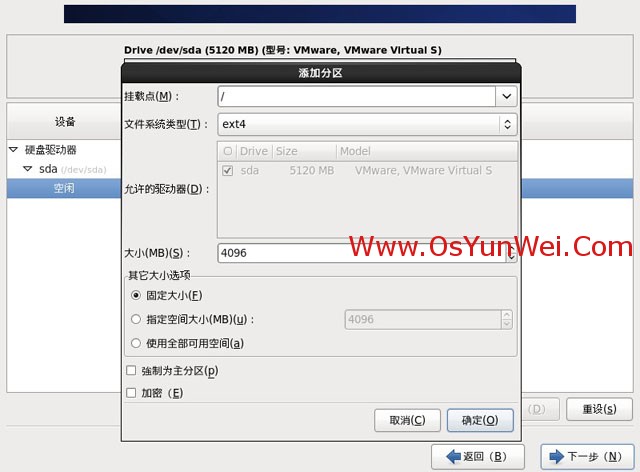 可以看到硬盤的容量,我這里顯示的是5G,現在自定義分區。